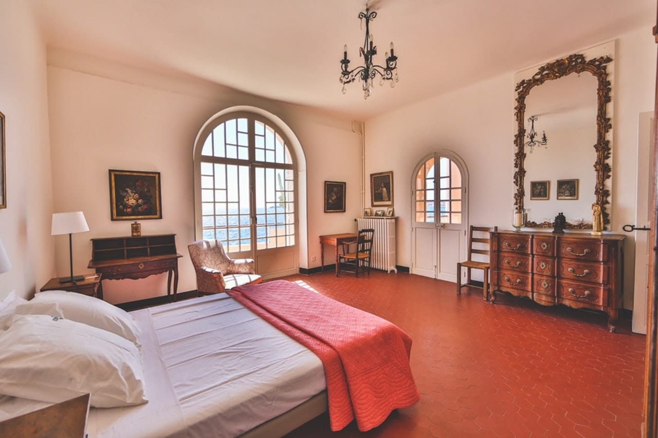 Au rez-de-jardin se trouve la belle chambre parentale, jouissant d’une exceptionnelle vue mer