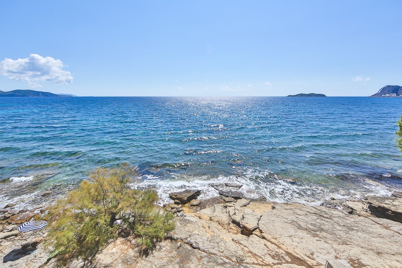Implantée sur le cap des Moulins, il y a 2 accès à la mer : un accès directement sous la maison, permettant la surveillance des enfants depuis la terrasse,